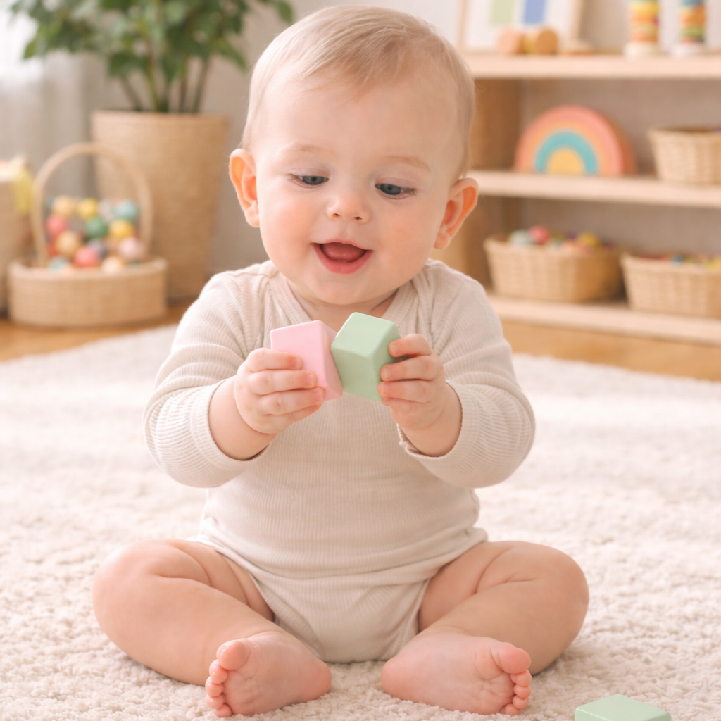 During the discovery stage, babies become curious explorers. Between 6 and 9 months they begin reaching, rolling, sitting and investigating objects with their hands and mouths. This stage is all about sensory exploration and learning how their actions affect the world around them.